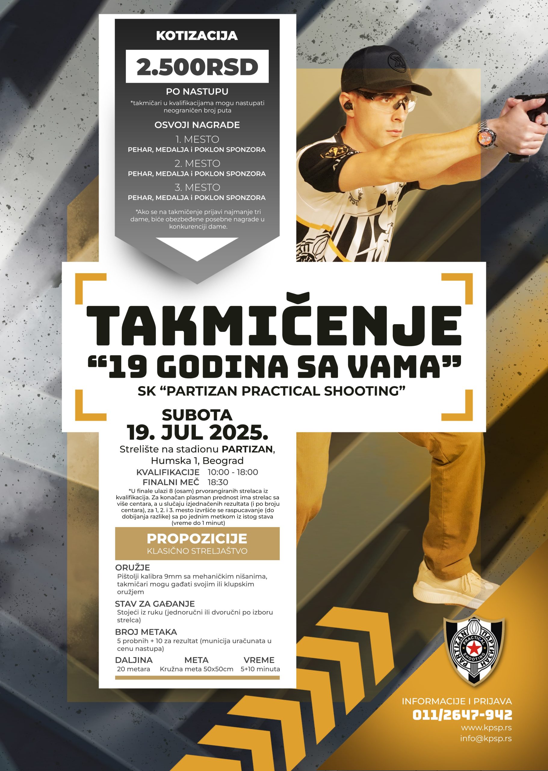 SK Partizan Practical Shooting vas sa ponosom poziva na streljačko takmičenje povodom obeležavanja 19 godina postojanja našeg kluba!